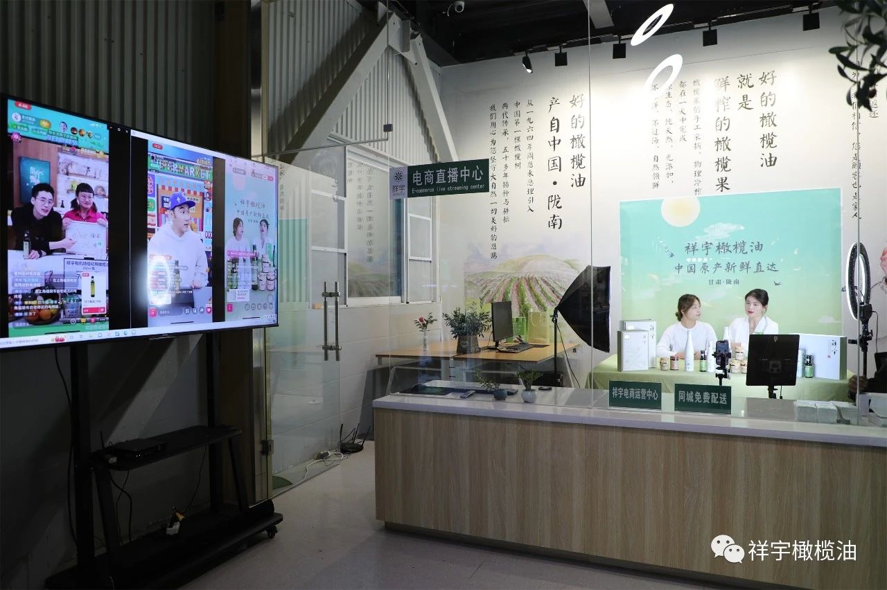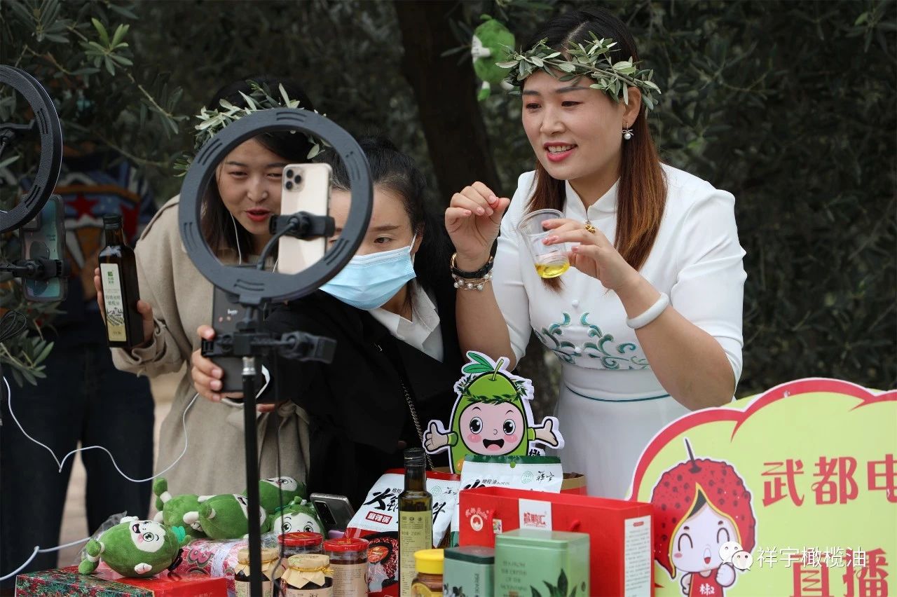 在祥宇生態(tài)產(chǎn)業(yè)園與賀家坪油橄欖基地的直播現(xiàn)場,主播們圍繞橄欖油、橄欖菜,用現(xiàn)場展示、品鑒體驗等方式向外界推介宣傳,直播間氣氛異常活躍。