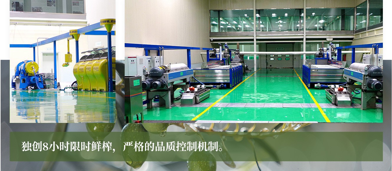為了生產(chǎn)出頂級品質的橄欖油,公司專門訂制了5萬個食品級專用果筐,從采摘到壓榨控制在8小時以內(nèi),先后引進了一條意大利貝亞雷斯和兩條德國福樂偉橄欖油冷榨生產(chǎn)線,建成了亞洲最大的特級初榨橄欖油生產(chǎn)車間。